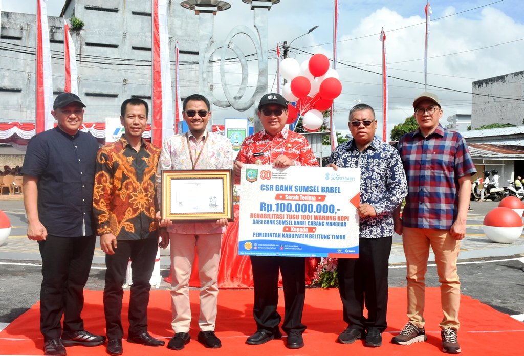Manggar, Beltim — Bank Sumsel Babel (BSB) kembali menunjukkan komitmennya dalam memajukan perekonomian daerah dengan menghibahkan dana sebesar Rp100 juta. Dana hibah ini akan digunakan untuk rehabilitasi dan pembangunan Tugu 1001 Warung Kopi yang berlokasi di Manggar, Kabupaten Belitung Timur (Beltim).